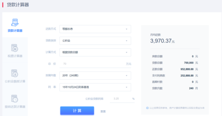 下圖為貸款70萬商貸跟公積金貸款還款利息的對比: